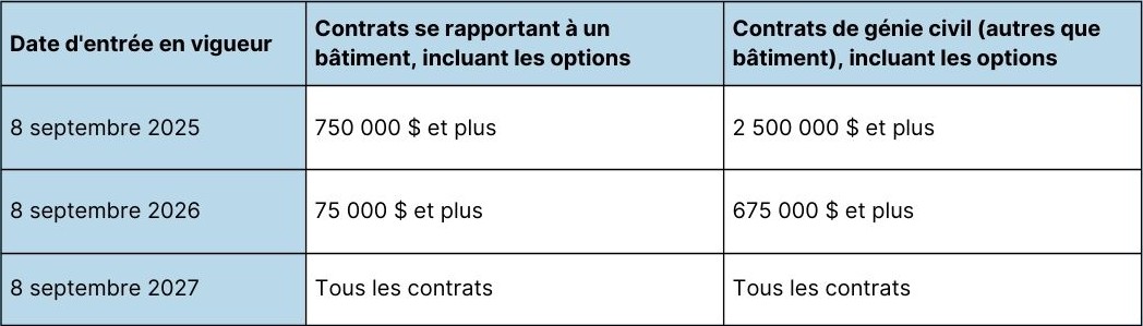 Voici les changements importants que les organismes publics, les entrepreneurs et leurs sous-traitants doivent considérer.